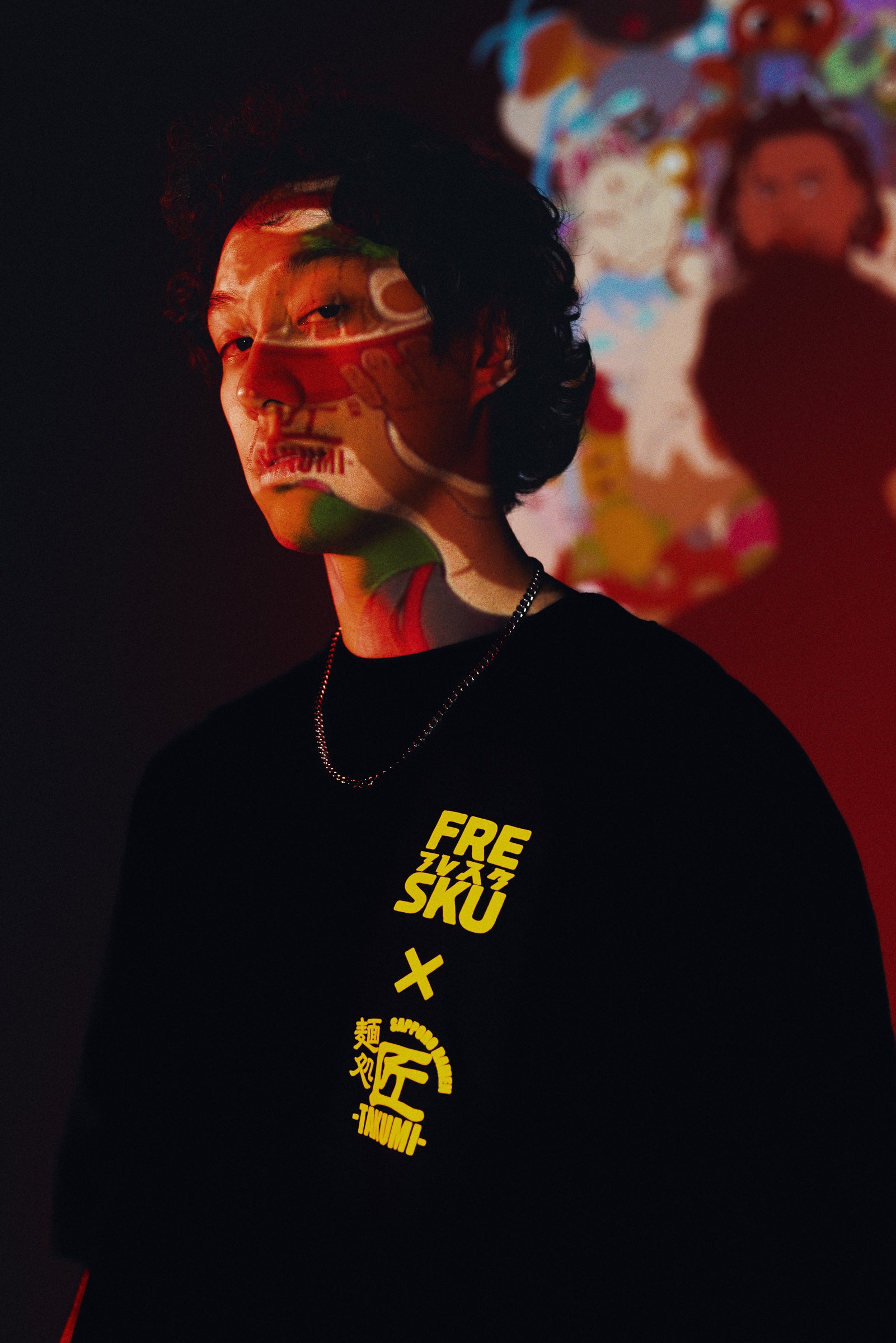 T-shirts, posters, chopsticks, spoons, and plates will all showcase references to Fresku and Takumi. Classic lines from Fresku's works appear on various items, such as the one-of-a-kind phrase: "must eat, must eat must." All of this exclusive merchandise is designed by Takumi Ogata, who collaborated closely with the Eindhoven rapper.